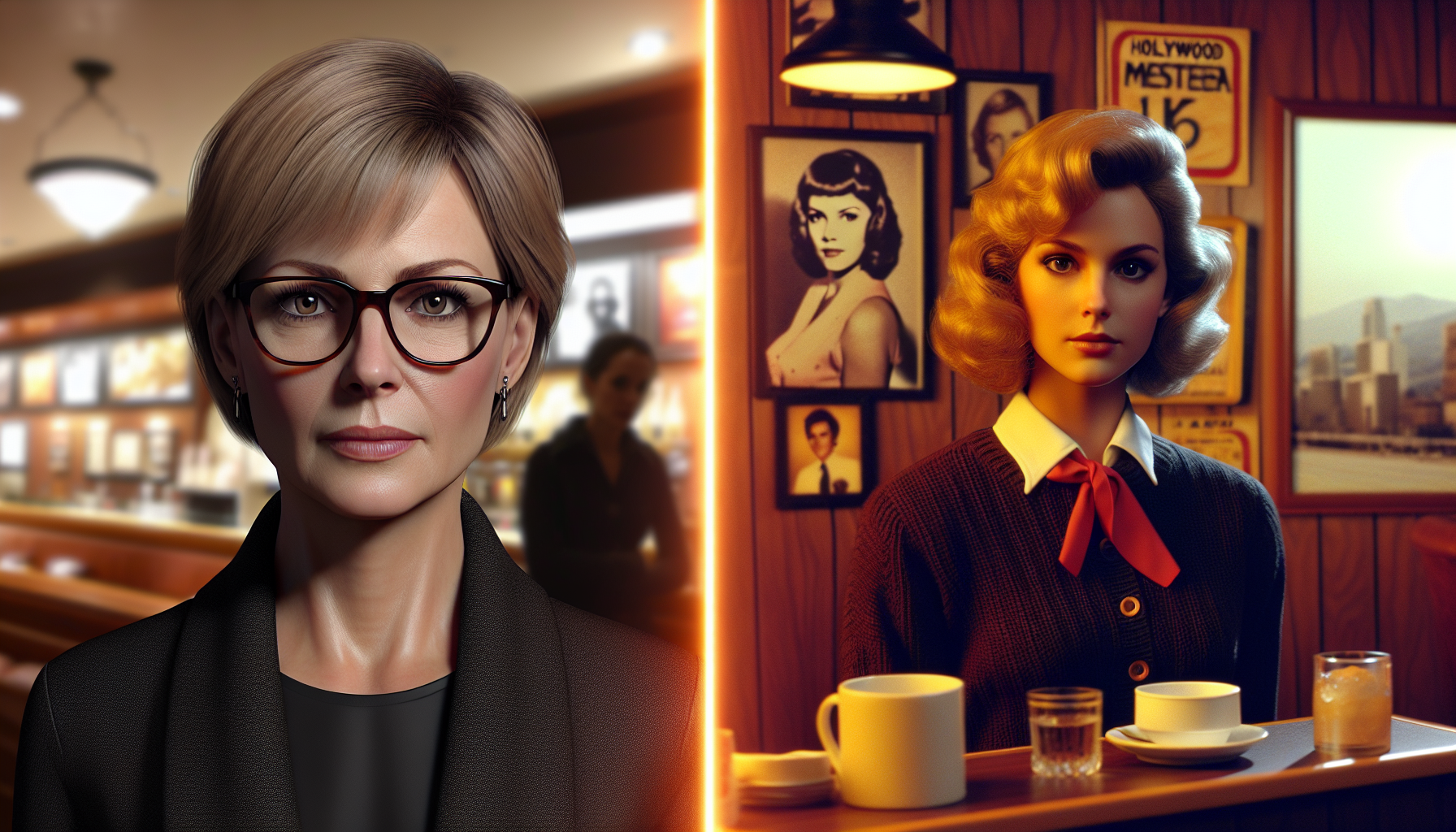 One photo featured Curtis at approximately 19 years old, portraying a waitress in a 1977 episode of the television series Columbo, one of her first acting roles. The other image showed her present-day self, dressed in a sleek black outfit, wearing glasses, and sporting her signature short blonde hair.