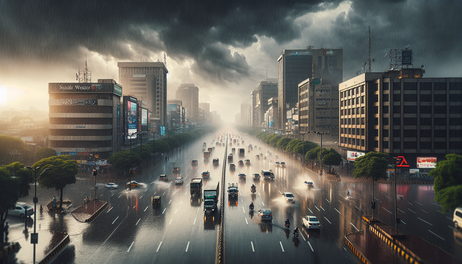 The intense rainstorm led to a noticeable drop in temperature, providing some relief from the usual heat but also causing disruptions in daily life. Visibility was severely reduced, making travel challenging for residents and commuters alike. The wet roads and diminished sightlines raised concerns about potential traffic accidents and delays.