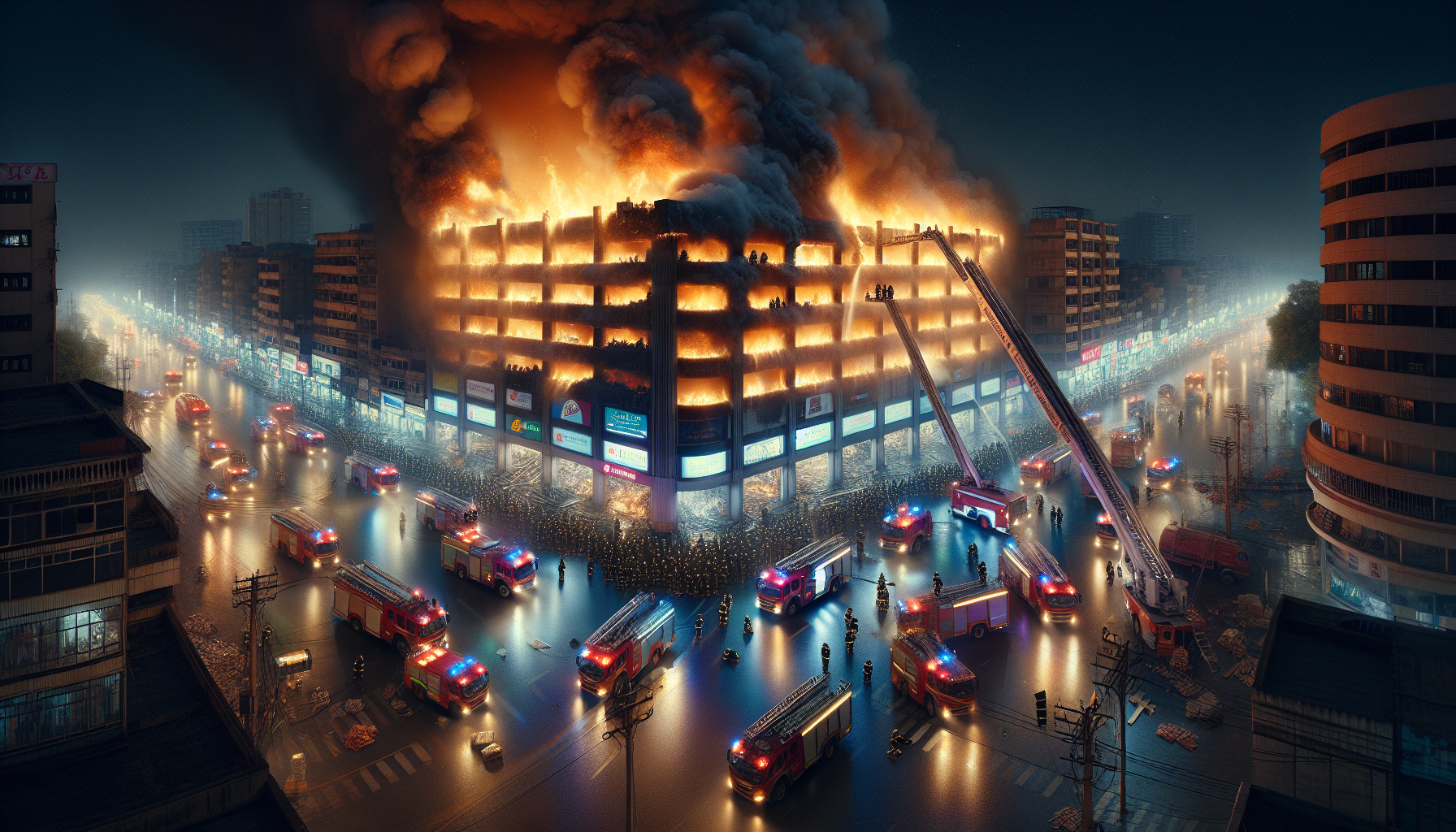 Preliminary assessments suggest that the fire may have originated from a short circuit, though officials have yet to verify the exact cause. The ongoing operation continues to focus on extinguishing the flames and ensuring the safety of nearby buildings and residents. Authorities remain vigilant as they work to bring the situation under control.