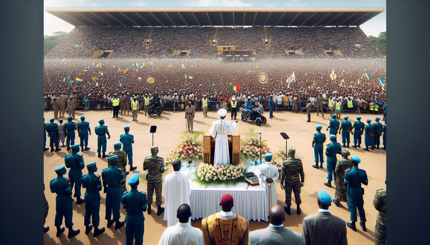 In a significant development during his Africa tour, Pope Leo delivered a powerful sermon to a congregation of 120,000 people at a stadium in Douala, Cameroon. The pontiff’s message centered on urging Cameroonians to reject violence and embrace peace, highlighting the importance of faith as a unifying force amid ongoing social and political challenges in the country. His presence at the packed venue underscored the Catholic Church’s role in promoting reconciliation and hope in regions affected by conflict.
